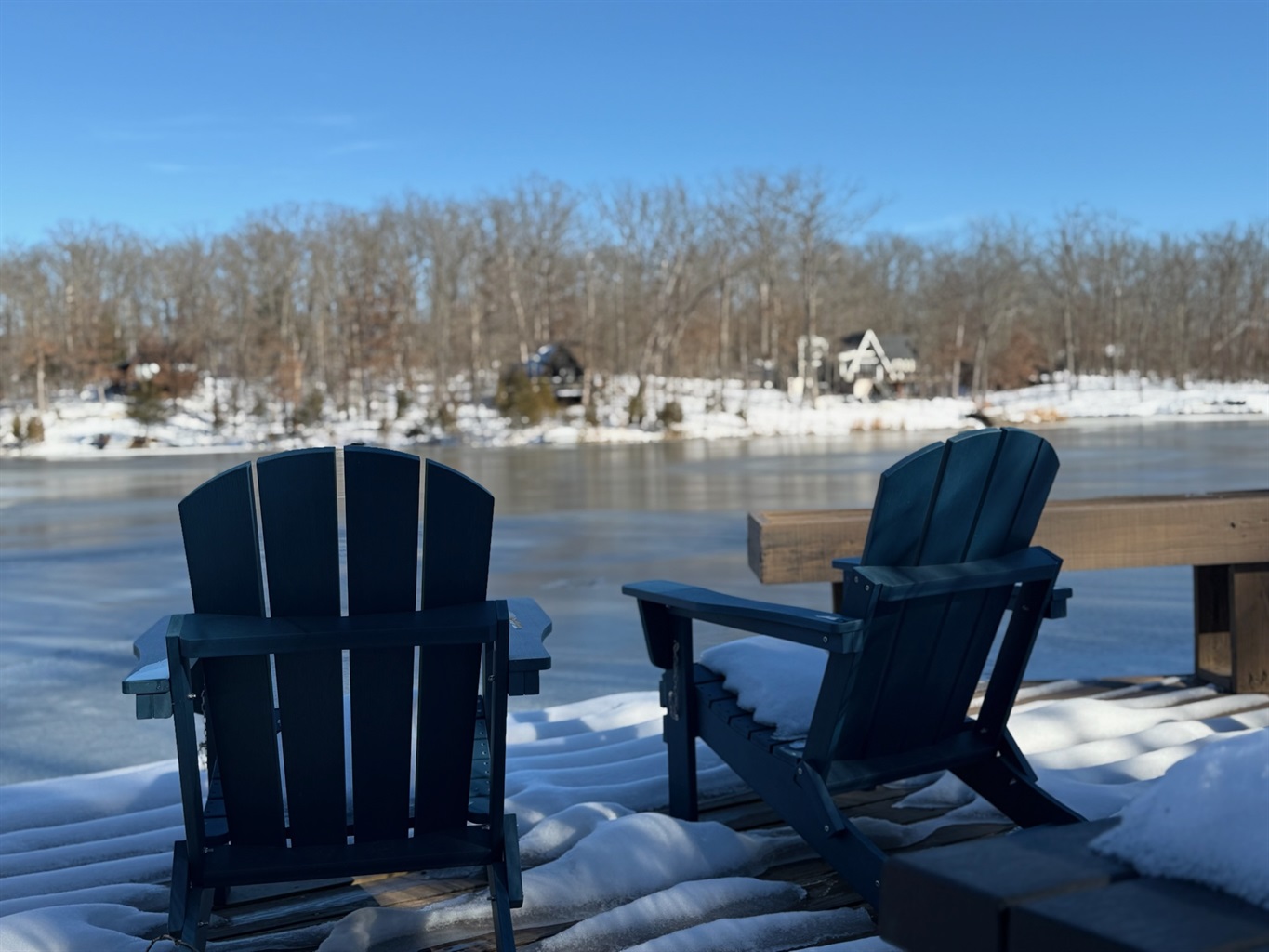 • Hot tub with lake views• Fire pit with Adirondack seating